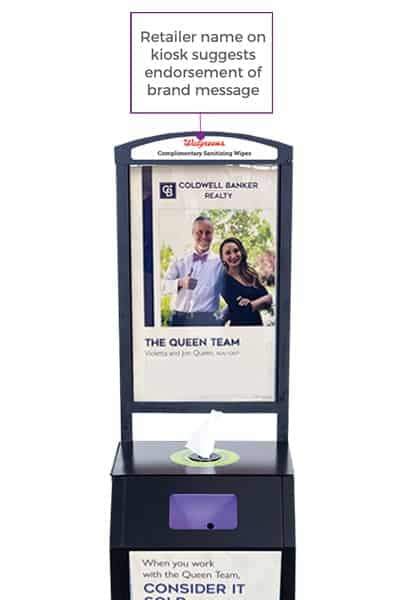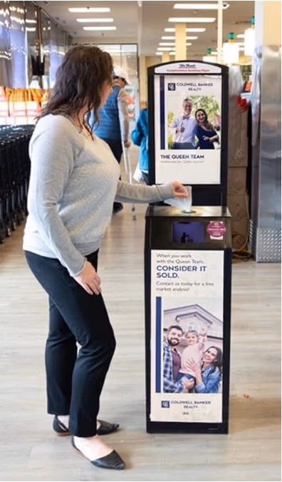 Our exclusive 5’5″ ft. tall wellness kiosks put you and your real estate agency front and center in high-traffic local retailers, keeping you top-of-mind when buyers and sellers are ready to make their next move.