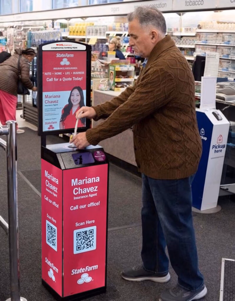Our exclusive 5’5″ ft. tall wellness kiosks put you and your insurance agency front and center in high-traffic local retailers, keeping you top-of-mind when people are ready to buy insurance and protect what matters most.